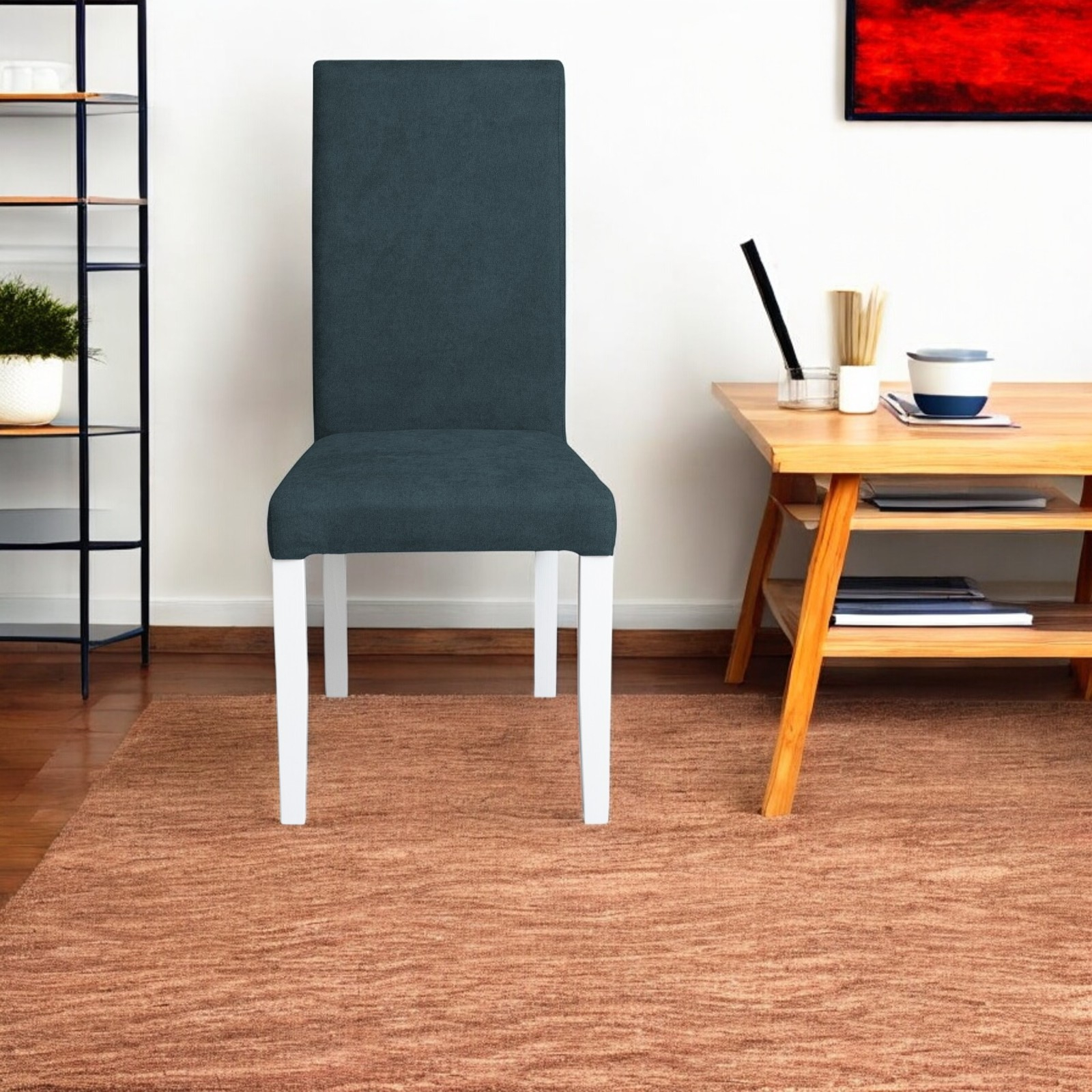 Scaun living TEO, picioare lemn alb, stofa albastru, 46x60x98 cm