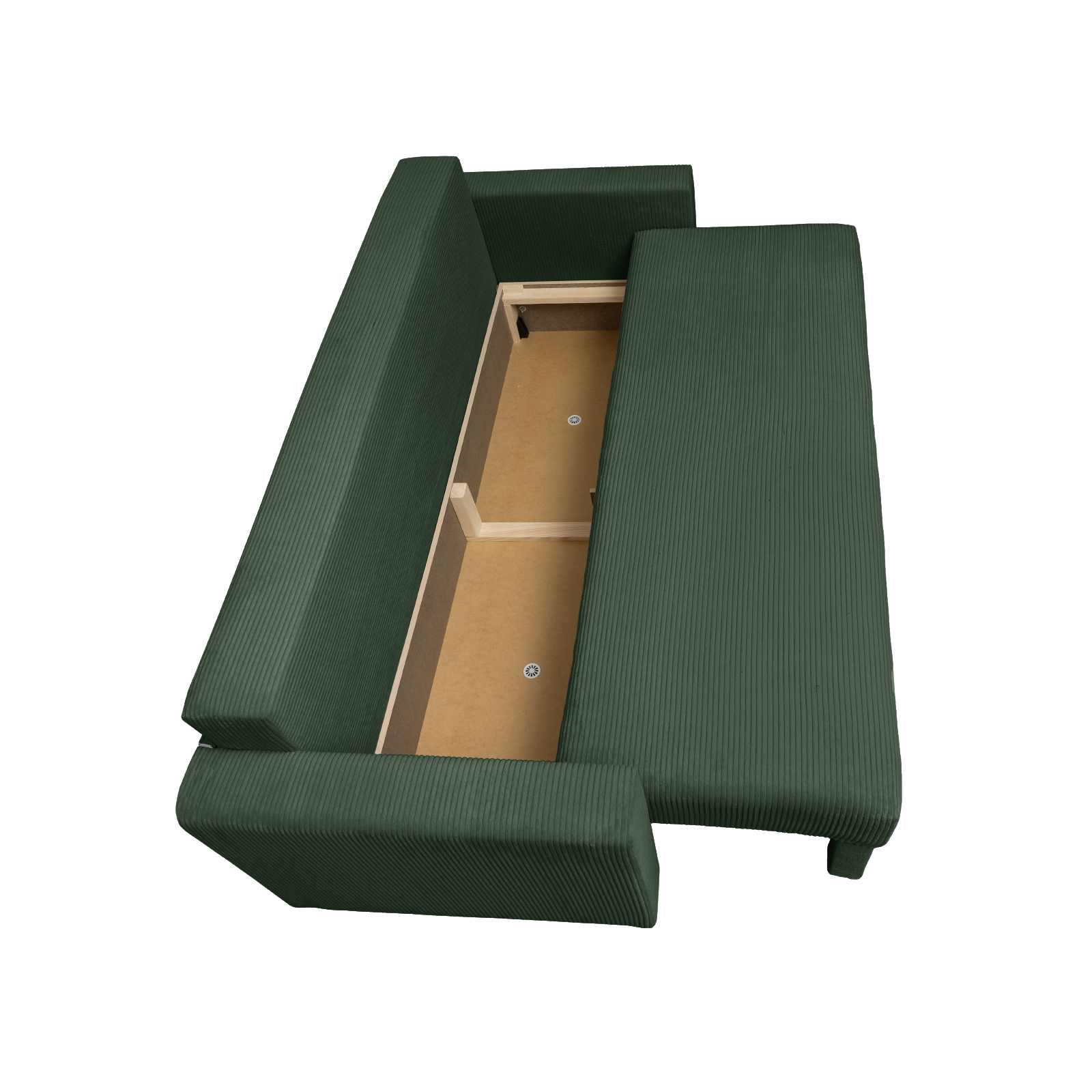 Canapea NICO II LUX extensibila, 3 locuri, cu arcuri si lada depozitare, verde smarald, 220x85x75 cm