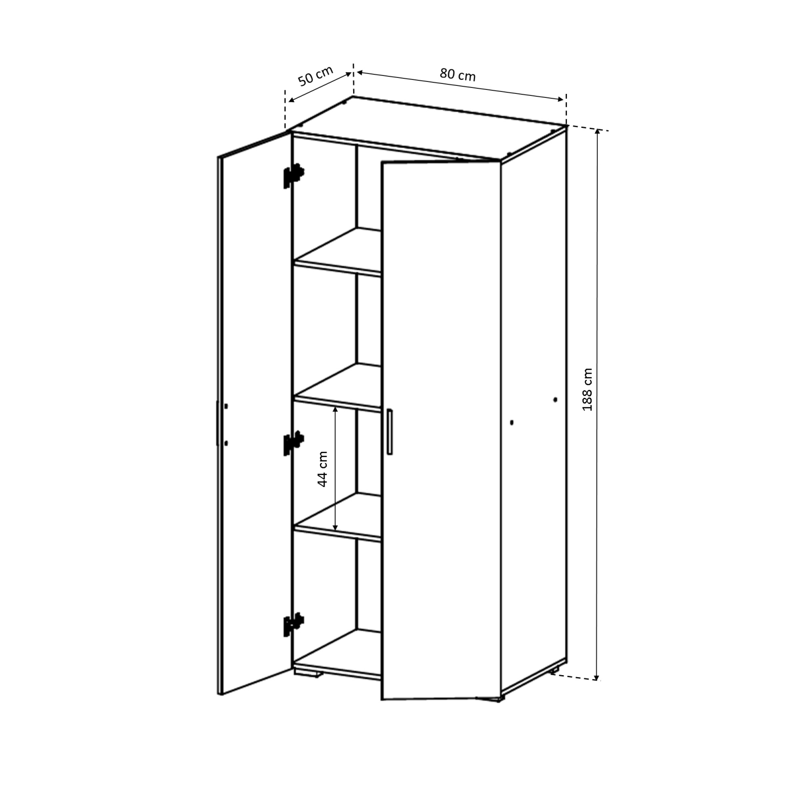 Dulap in 2 usi realizat din PAL melaminat ce contine 3 polite. Inaltimea dulapului permite sa fie montat chiar si in camerele cu o inaltime de maxim 2m.