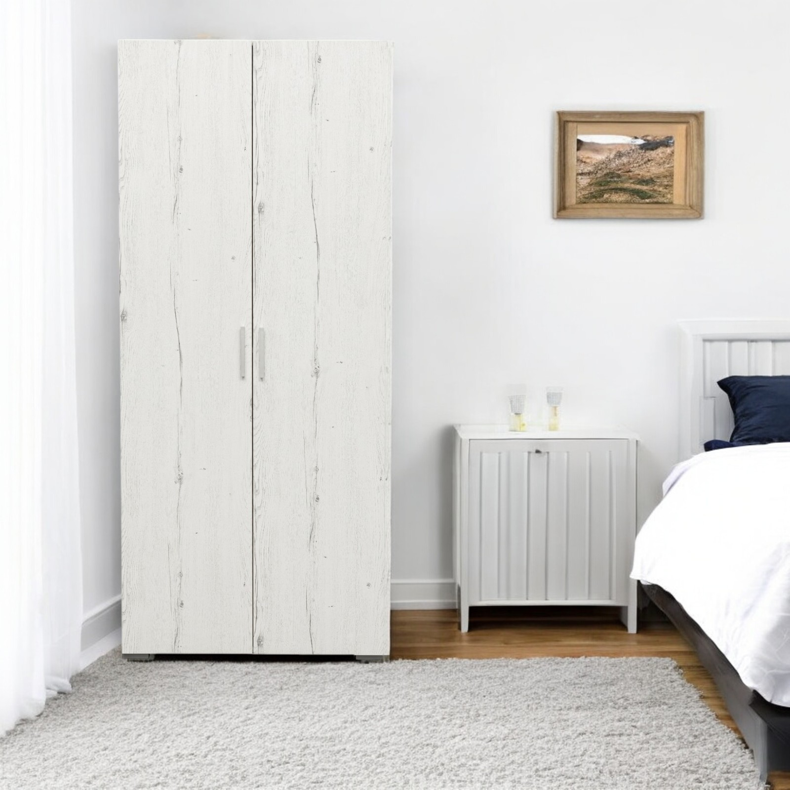 Dulap CORINNE, 2 usi, 4 rafturi, alb Elvetia, 80x50x188 cm