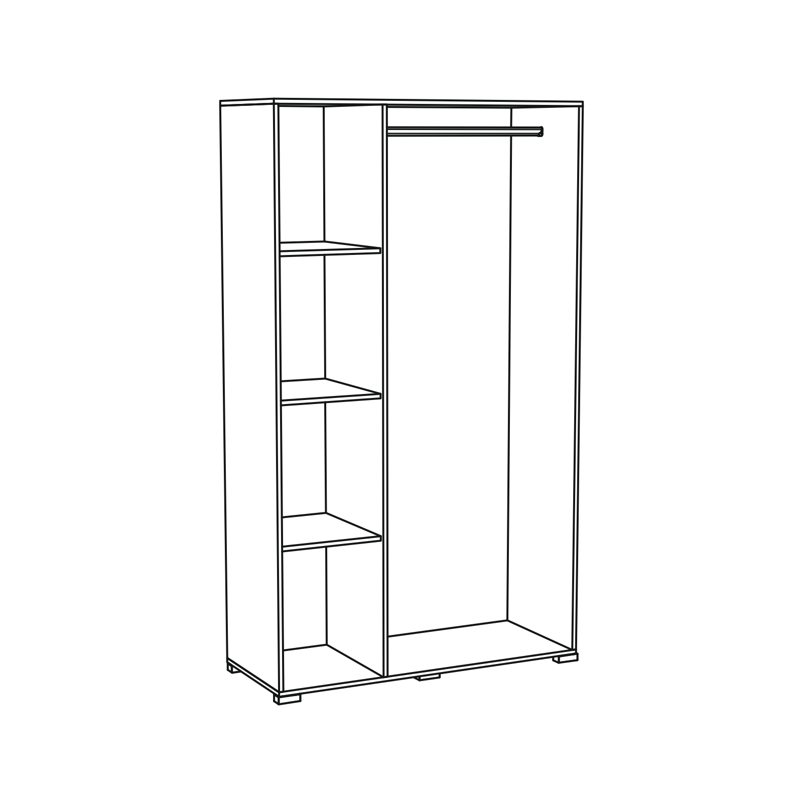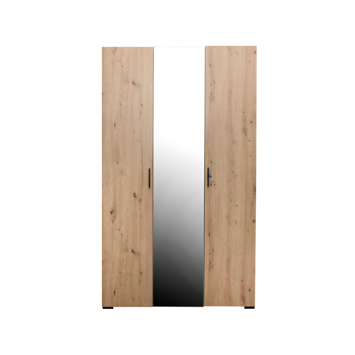 Dulap in 3 usi realizat din PAL melaminat ce contine 4 polite în partea stanga și suport pentru umerase în partea dreapta.