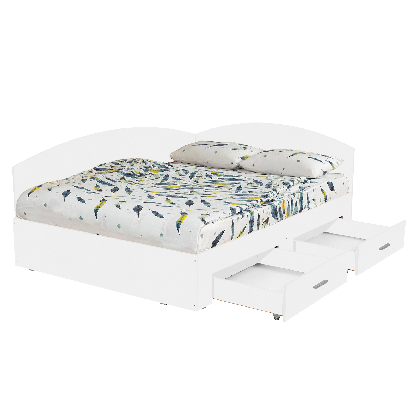 Pat Colt Alma 180x200 cm, cu 2 sertare laterale pe role, alb