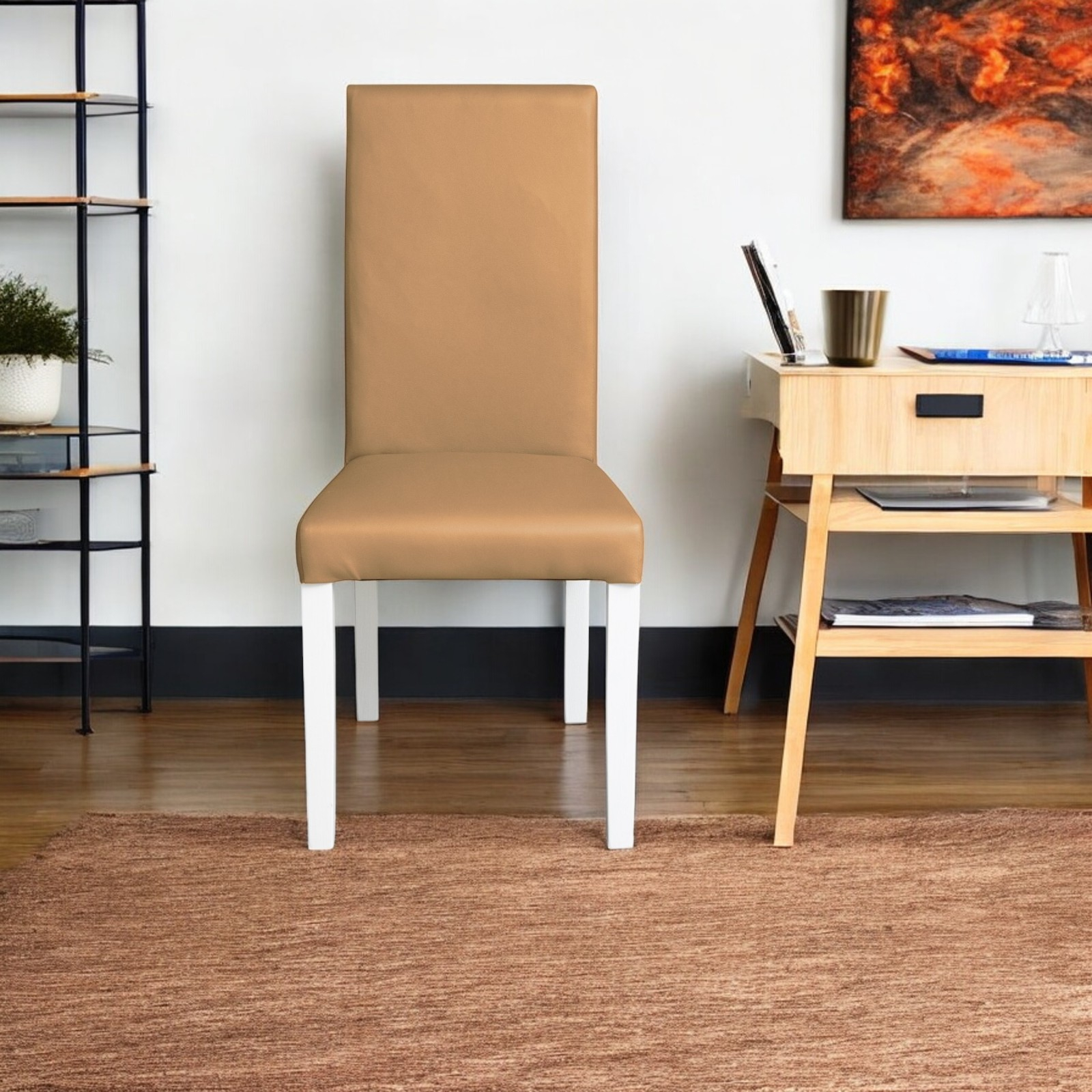 Scaun living TEO, picioare lemn alb, piele ecologica bej inchis, 46x60x98 cm