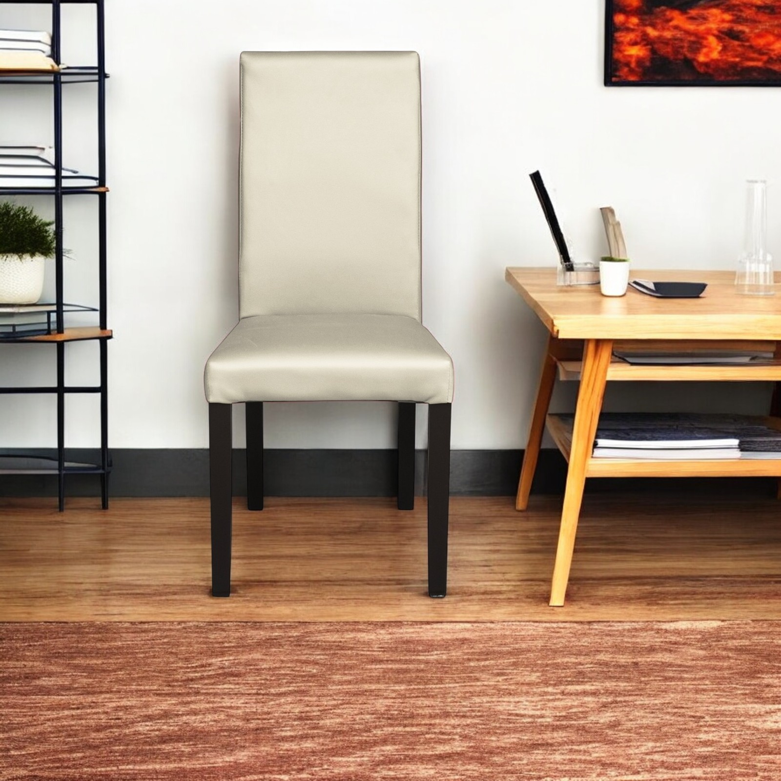 Scaun living TEO, picioare lemn wenge, piele ecologica crem, 46x60x98 cm