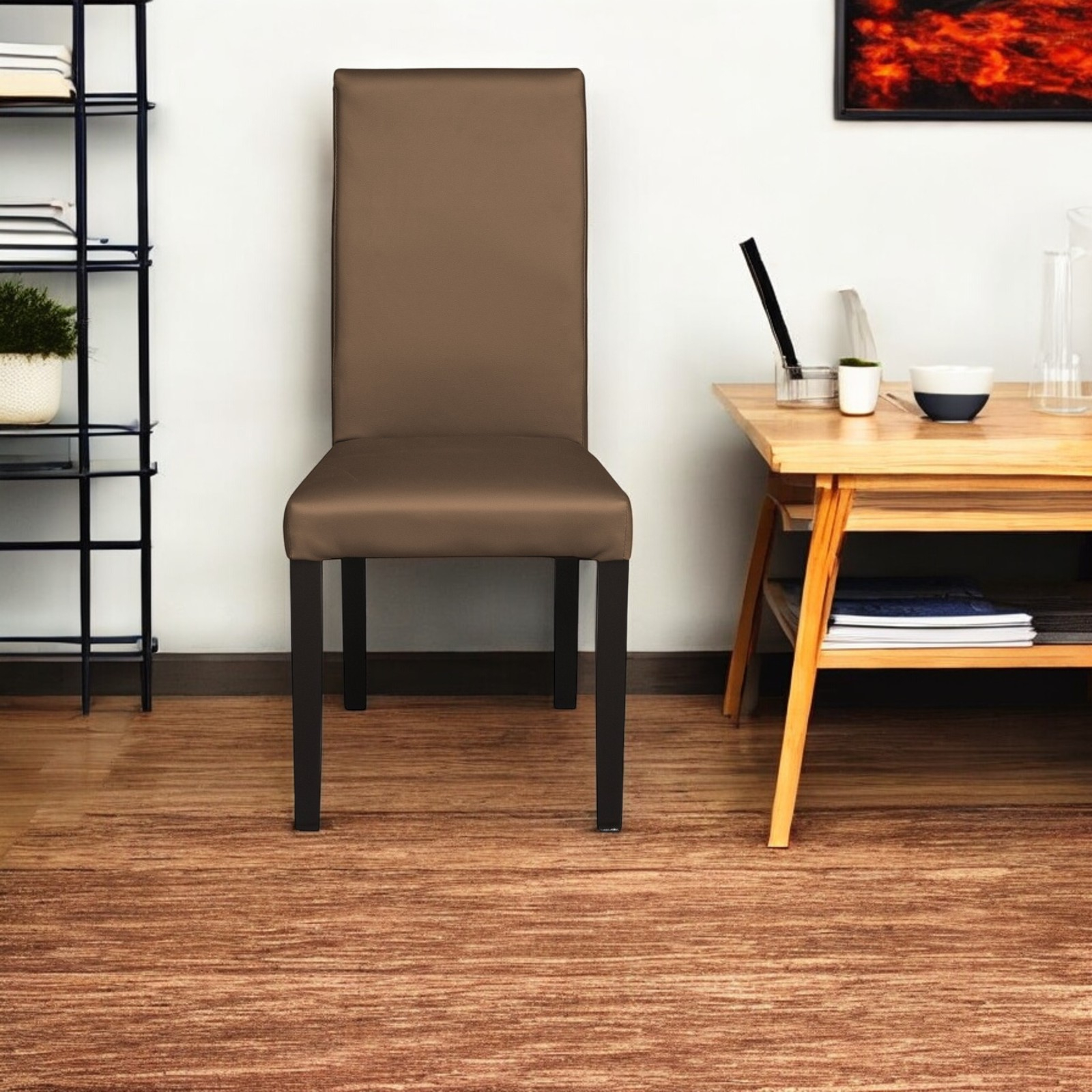Scaun living TEO, picioare lemn wenge, piele ecologica cappuccino, 46x60x98 cm