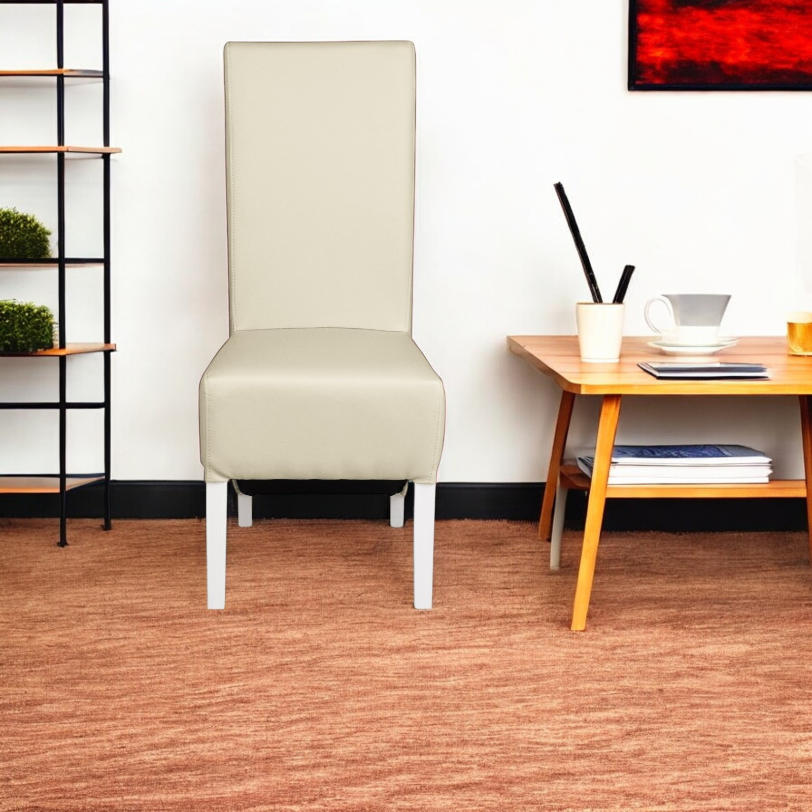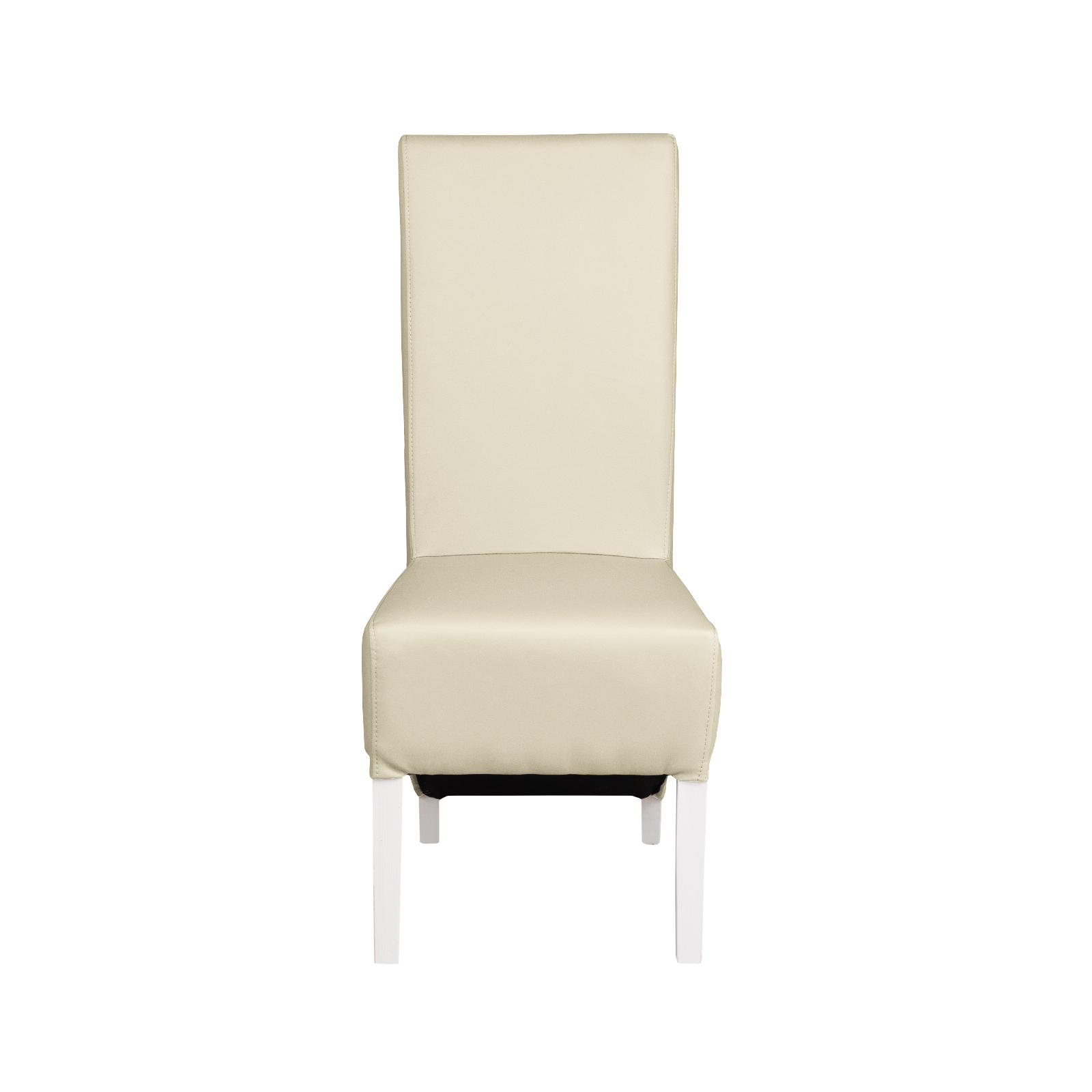 Scaun living VANESSA, picioare lemn alb, piele ecologica crem, 47x60x110 cm