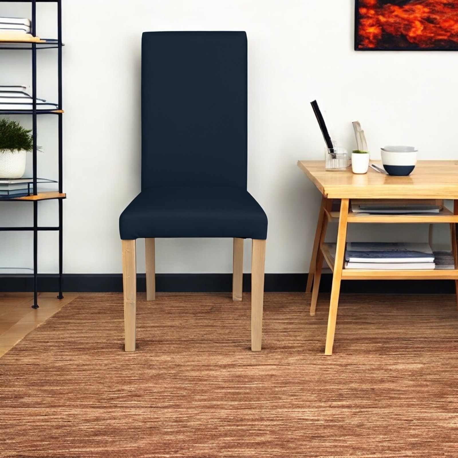 Scaun living TEO, picioare lemn natur, piele ecologica albastru, 46x60x98 cm