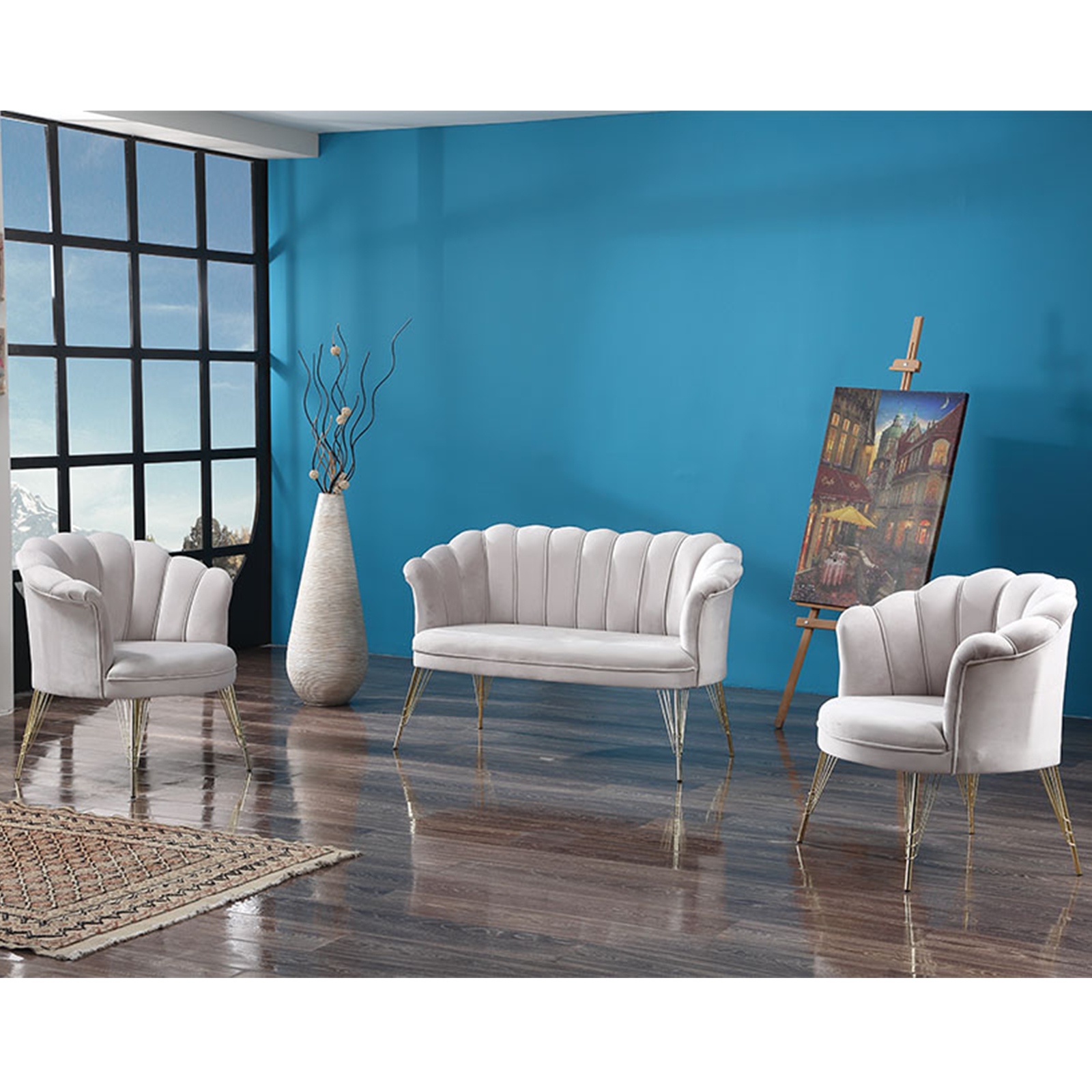Setul PAPATYA este special conceput pentru persoanele care doresc sa isi amenajeze livingurile intr-un stil elegant si modern, fiind format dintr-o canapea fixa si doua fotolii fixe. Acesta are un design deosebit, in nuante ce-ti incanta privirea. Canapeaua are 2 locuri, si este destinata momentelor de armonie si relaxare alaturi de familie. Atat fotoliile, cat si canapeaua sunt extrem de rezistente si confortabile. Picioarele sunt confectionate din metal cromat. Setul PAPATYA asigura confortul, functionalitatea si utilizarea eficientă a spatiului livingului dumneavoastra.
