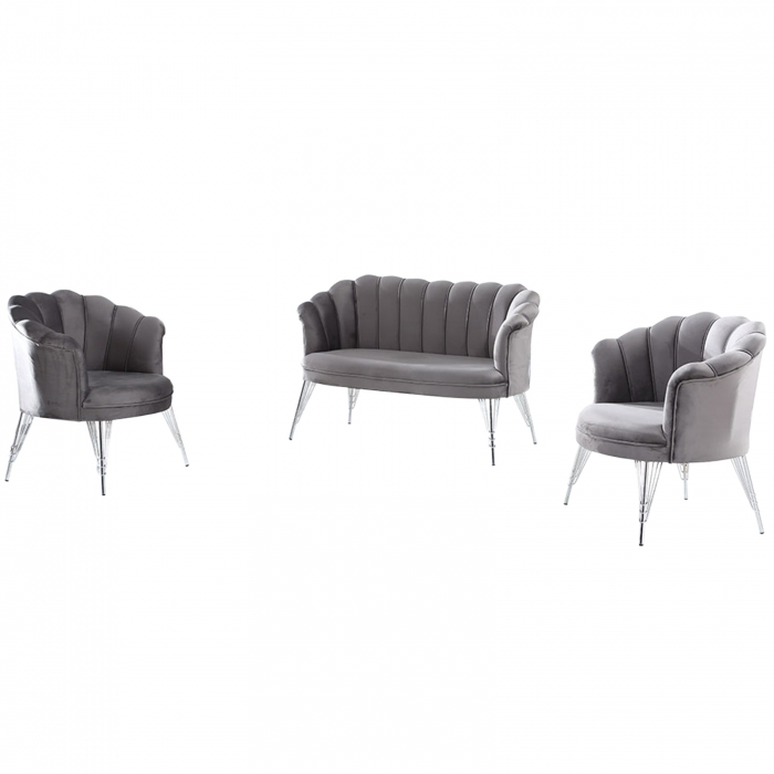 Set PAPATYA 2-1-1, canapea fixa 2 locuri, 2 fotolii fixe, gri