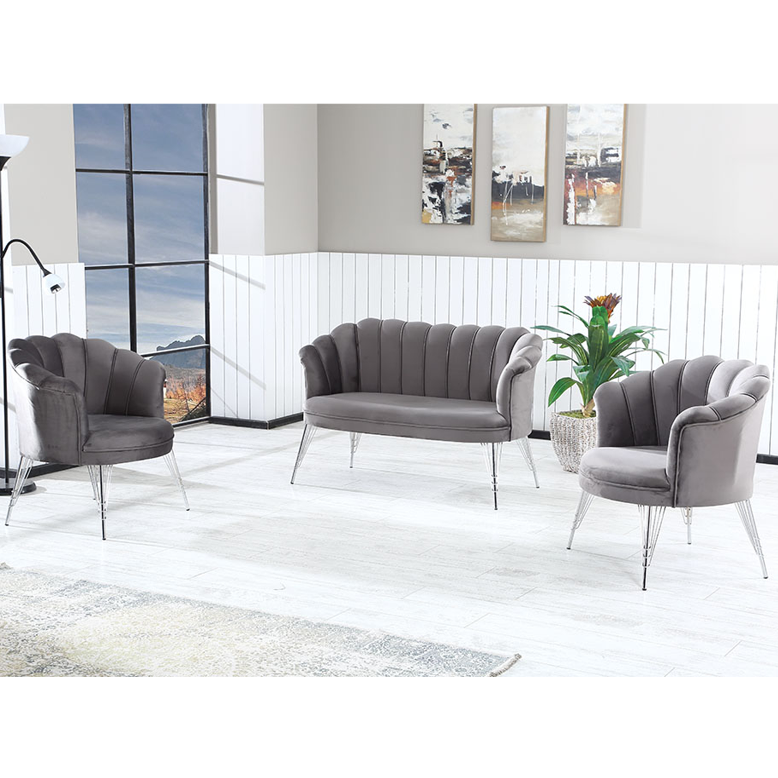 Setul PAPATYA este special conceput pentru persoanele care doresc sa isi amenajeze livingurile intr-un stil elegant si modern, fiind format dintr-o canapea fixa si doua fotolii fixe. Acesta are un design deosebit, in nuante ce-ti incanta privirea. Canapeaua are 2 locuri, si este destinata momentelor de armonie si relaxare alaturi de familie. Atat fotoliile, cat si canapeaua sunt extrem de rezistente si confortabile. Picioarele sunt confectionate din metal cromat. Setul PAPATYA asigura confortul, functionalitatea si utilizarea eficientă a spatiului livingului dumneavoastra.