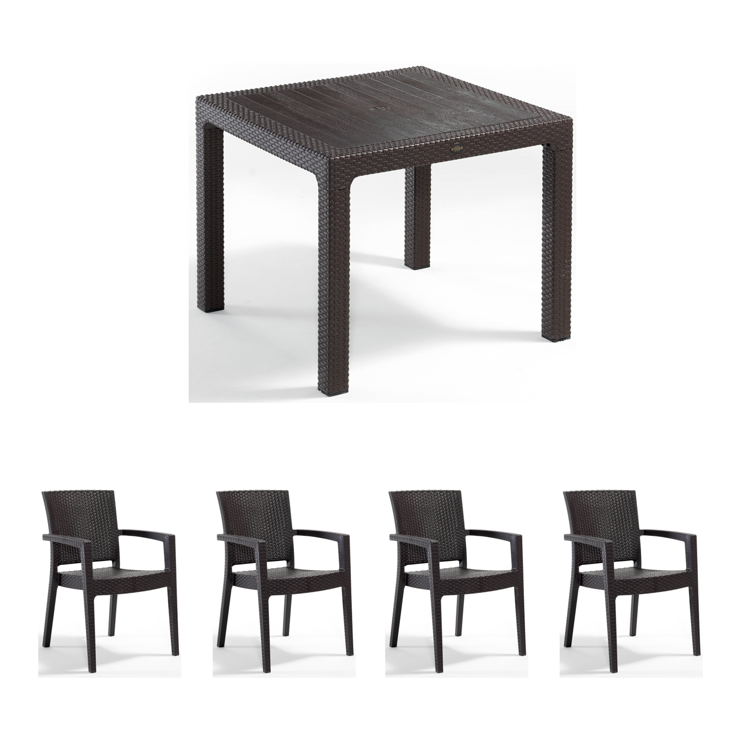 Set gradina cu masa CLASSI 90x90 cm + 4 scaune PARIS 62x58x88 cm, model ratan, maro