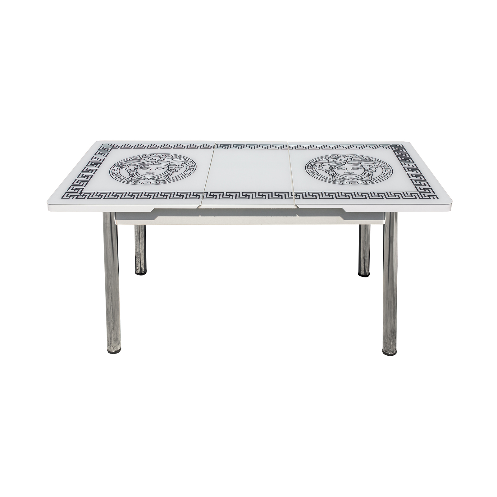 Set Lara, masa extensibila cu 6 scaune print, alb, 130/165x80x79 cm