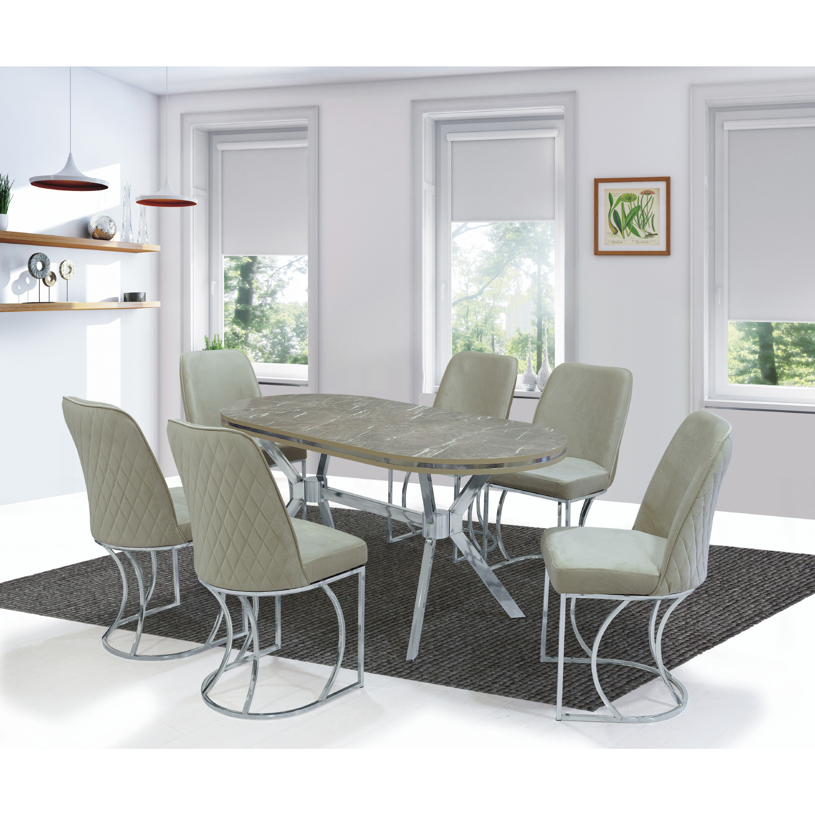 Descriere: Setul este alcatuit dintr-o masa si 6 scaune, fiind solutia ideala daca doriti sa luati masa sau sa va relaxati alaturi de cei dragi la servirea ceaiului sau a cafelei.