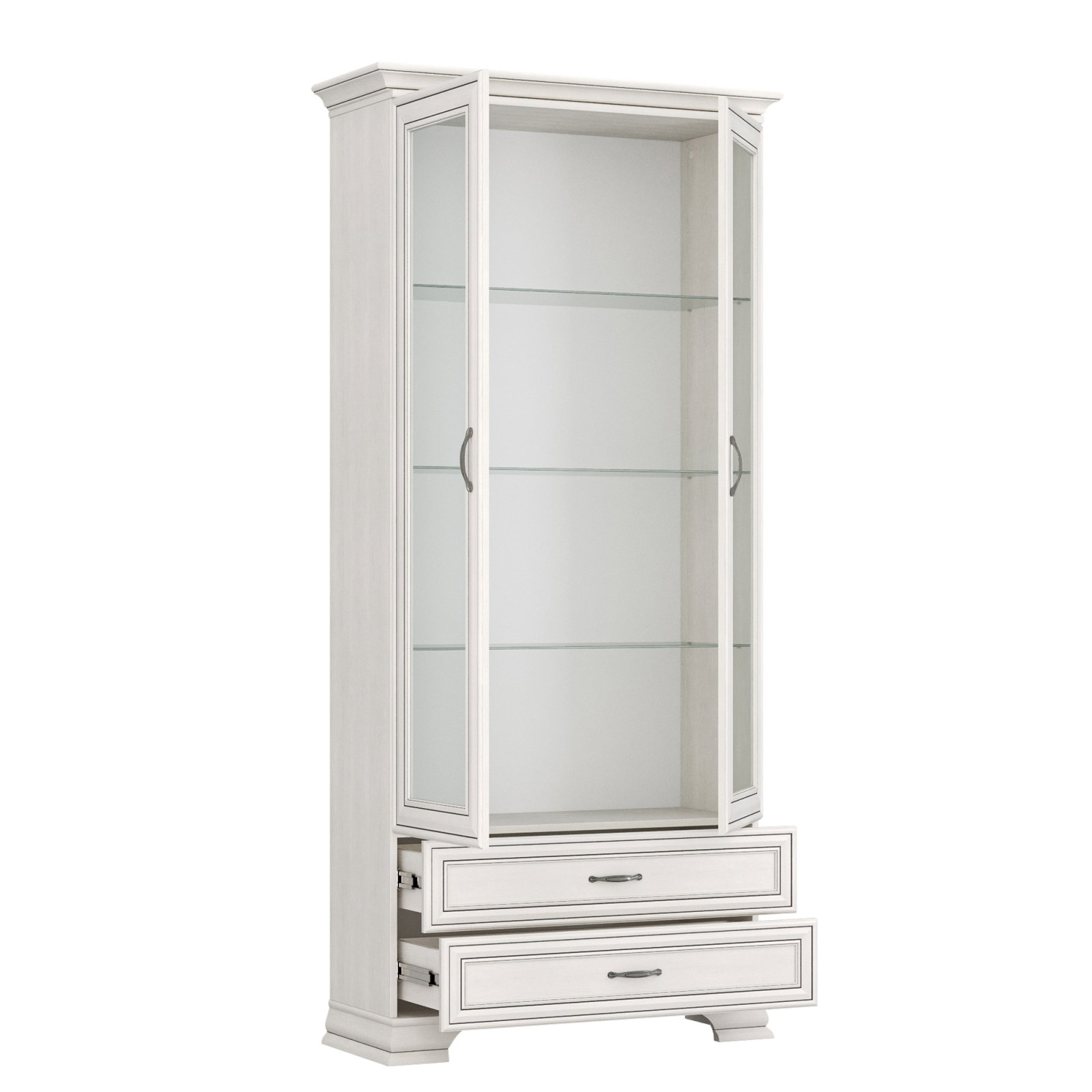 Se consideră în mod general că vitrina este un mobilier indispensabil în orice sufragerie sau cameră de zi, mai ales atunci când interiorul este amenajat în stil clasic. Având acest lucru în vedere, am creat pentru dumneavoastră o vitrină cu elemente vitrate, care va decora interiorul și, în același timp, va fi funcțională. Rafturile din sticlă vor evidenția perfect un serviciu de porțelan elegant și reprezentativ, iar sertarul mic este ideal pentru depozitarea obiectelor mărunte. Întregul ansamblu se prezintă elegant și cu stil.
